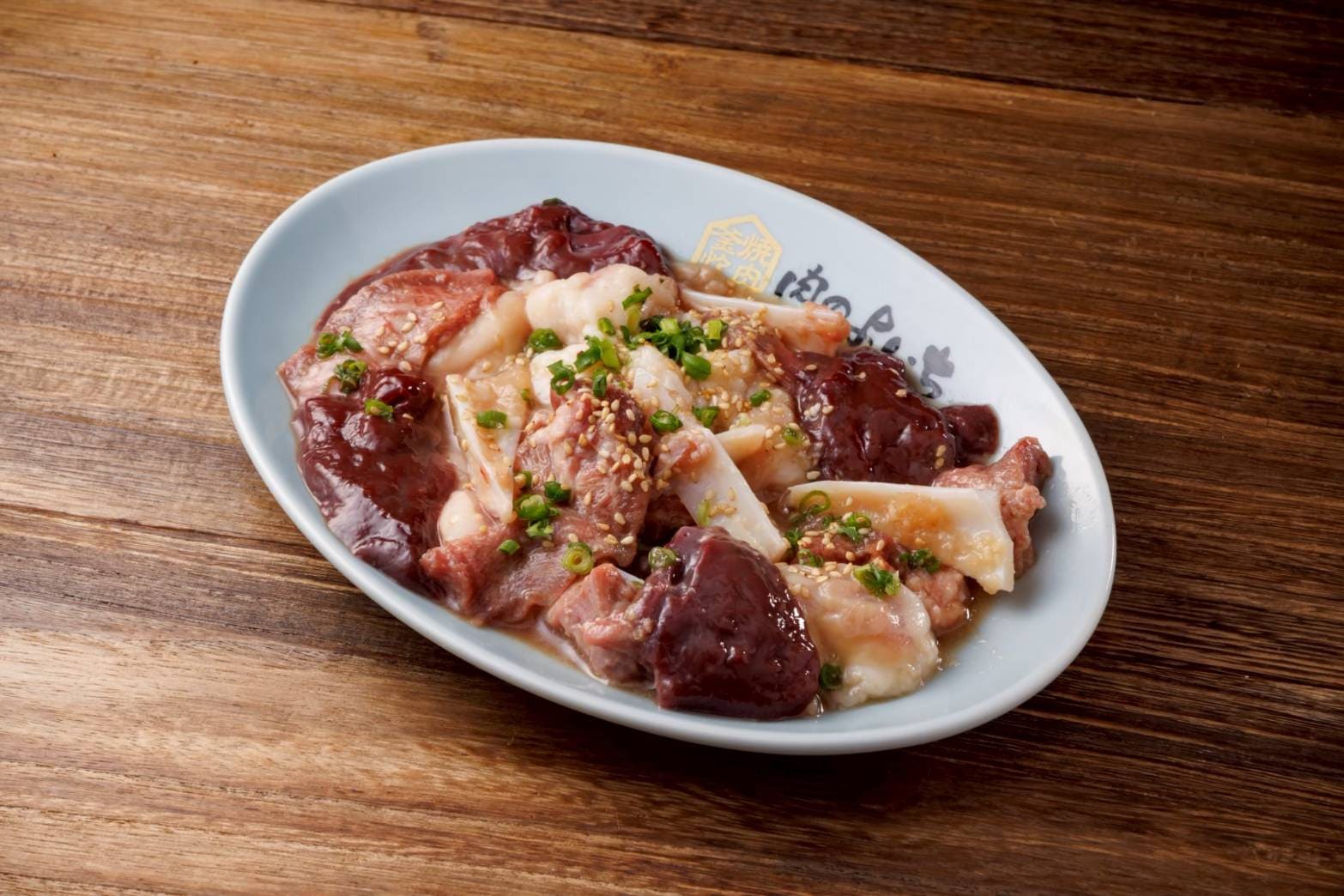 いろいろなホルモンを楽しめる欲張り盛り。(塩、味噌、旨辛だれ、青唐だれからお選びいただけます。)※写真2人前