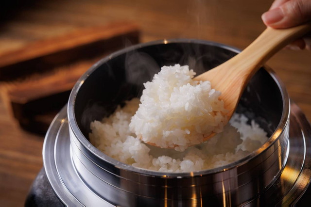お肉に合う特別な「よいち米」を使用。一粒一粒が甘く、タレとの相性抜群。全卓上で炊き上げています。