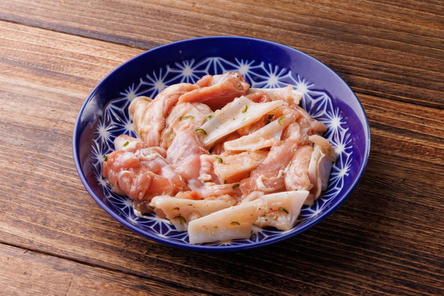 ぷりっと弾力ある食感が人気。(塩、味噌、旨辛だれ、青唐だれからお選びいただけます。)