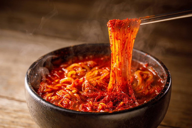 辛いものが好きな方は必見!リピーター続出のやみつきもちもち旨辛麺。ニンニクの効いたパンチある麺で元気をチャージ。